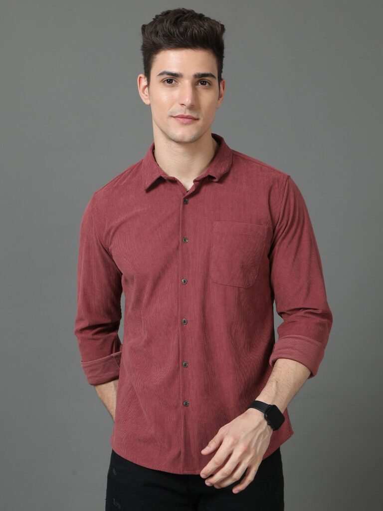 Powerlook Men Button-Down Collar Solid Cotton Casual Shirt