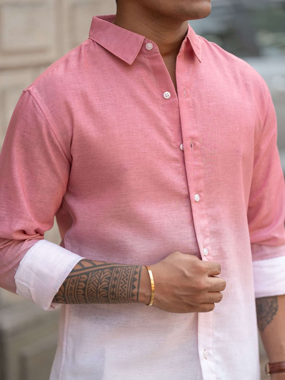 Pink & White opaque casual shirt for men